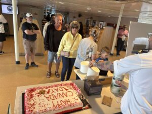 Thank you to everyone who joined us onboard the Chi-Cheemaun on Tuesday, July 1, 2025, as we honoured Canada’s birthday with live entertainment, a Canada-themed trivia handout, giveaways, and a slice of celebratory cake!