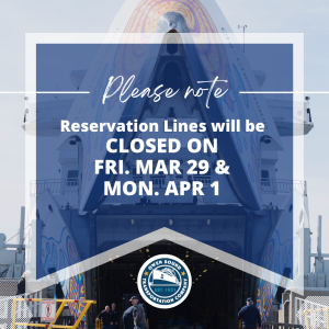 Reservation Lines will be closed on Fri. Mar 29 & Mon. Apr 1.