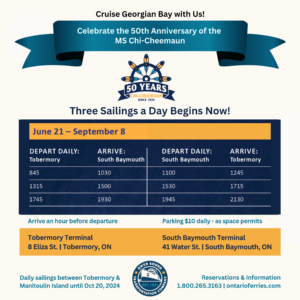 Chi-Cheemaun News: Three Sailings a Day Begins Today!